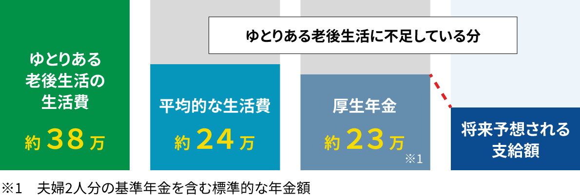 さらに、ゆとりある老後に 必要な生活費は、月額38万円といわれています。